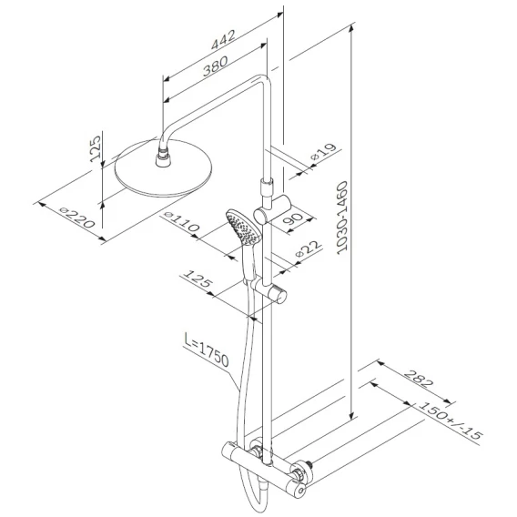Душевая система 220 мм Am.Pm Gem F0790410