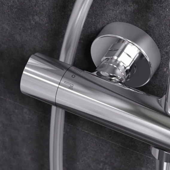 Металлическая розетка, Эксцентрики, Душевой шланг, Душевая лейка, Держатель для душевой лейки, Верхний душ, Кронштейн, Штанга душевая, Термостат