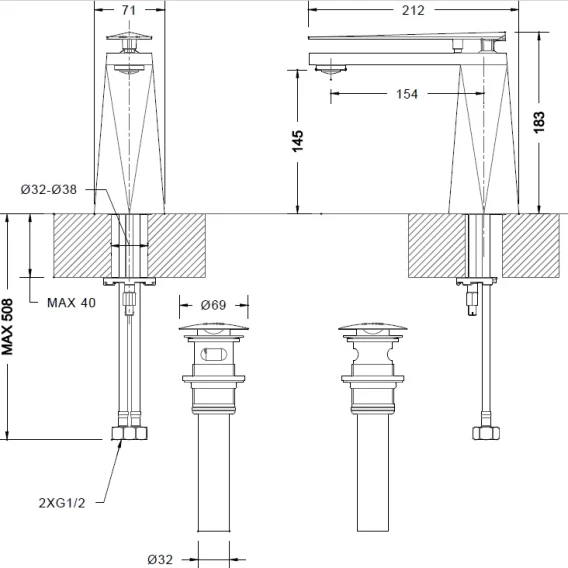 Крепление, Аэратор, Гибкая подводка, Донный клапан