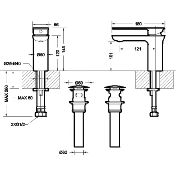 Крепление, Аэратор, Гибкая подводка, Донный клапан