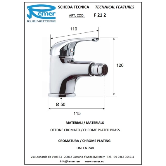 Смеситель для биде без донного клапана Remer Serie 35 F21