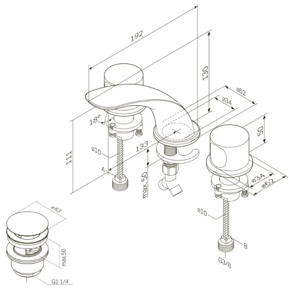 Крепление, Аэратор, Гибкая подводка, Донный клапан