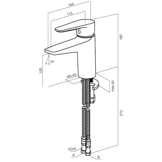 Смеситель для раковины без донного клапана Remer Absolute AU57BO