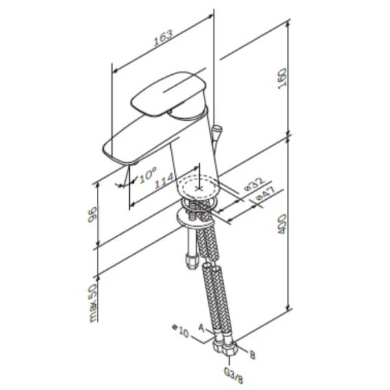 Смеситель для раковины без донного клапана GID Berlin SS080-CH-K