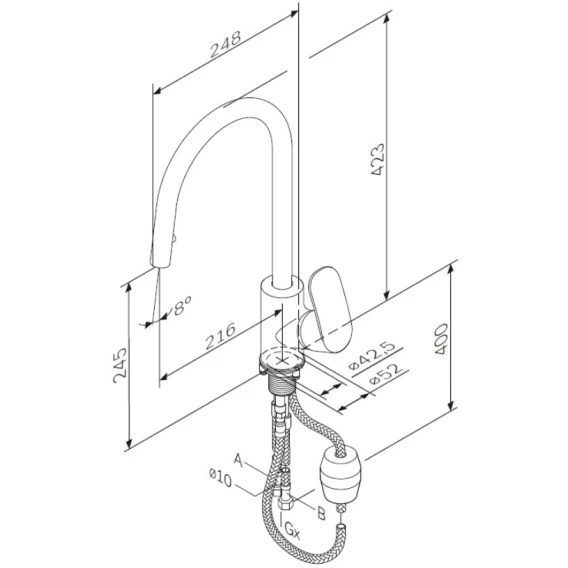 Крепление, Аэратор, Гибкая подводка, Душевой шланг, Душевая лейка