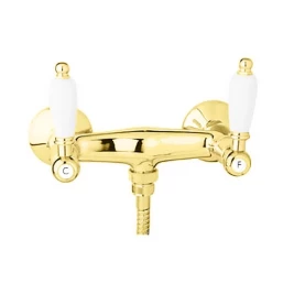 Смеситель для душа золото 24 карат, ручки белые Cezares First FIRST-DS-03/24-Bi
