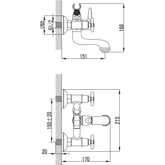 Аэратор, Металлическая розетка, Эксцентрики, Душевой шланг, Душевая лейка, Держатель для душевой лейки