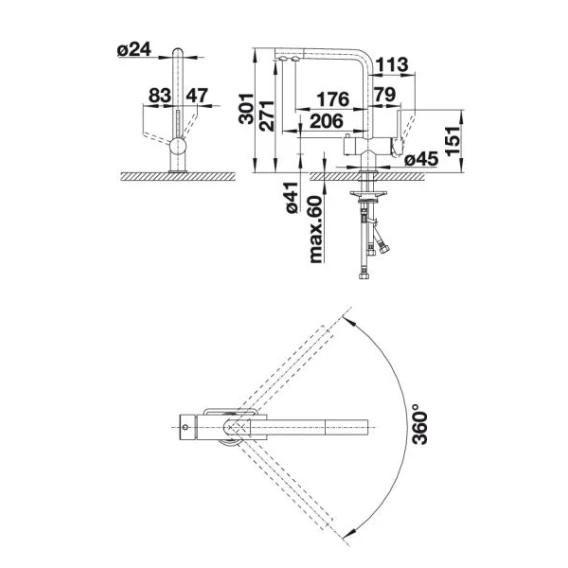 • Высокий излив с двойной функциональностью – не надо делать дополнительное отверстие