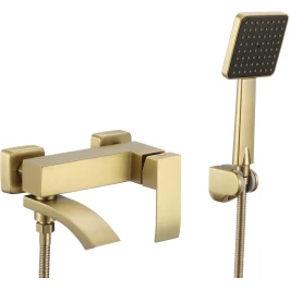 Смеситель для ванны Fmark FS8624-1C с душевым гарнитуром, золотой матовый