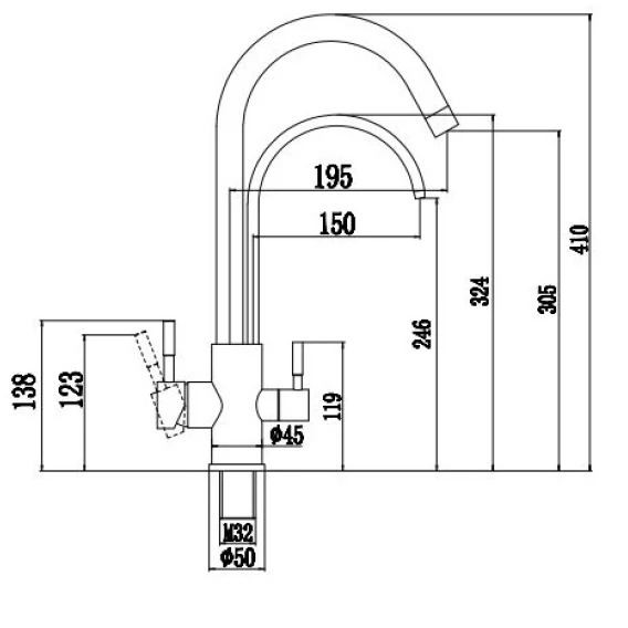 Длина излива 19.5 см