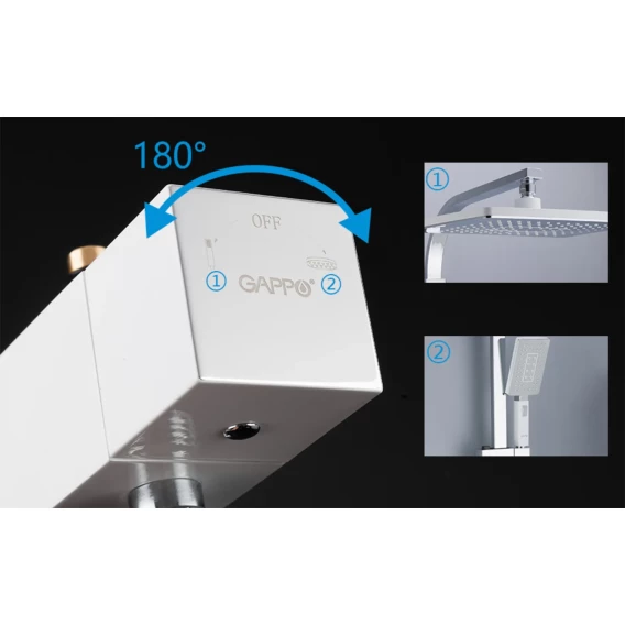 Душевая стойка Gappo G2408-8 300x200 мм, хром/белый