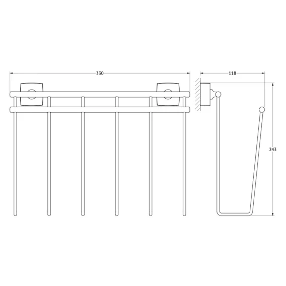 Вместительная конструкция аксессуара изготовлена из латунных прутьев, не закрывающих обзор содержимого, и расширена в верхней части, что обеспечивает свободный поиск необходимой литературы. Сужение к низу обеспечивает плотное хранение газет и журналов.