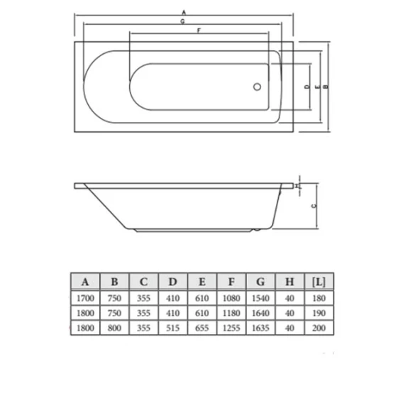 Акриловая ванна 180x75 см C-Bath Geba CBQ009002