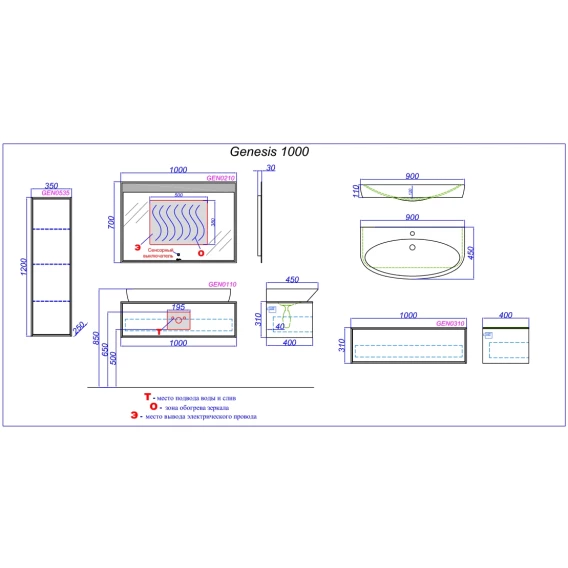 Тумба с раковиной миллениум серый/белый глянец 100 см Aqwella 5 Stars Genesis SETGEN0110MG/Esc.09.04.D