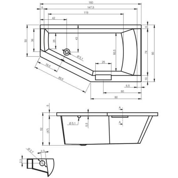 Акриловая ванна 160x90 см Riho Geta L B030001005