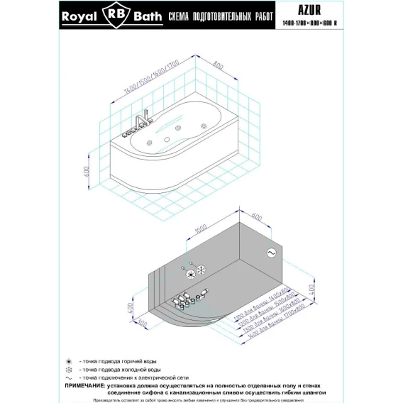 •  акриловая ванна Azur 150x80x60;