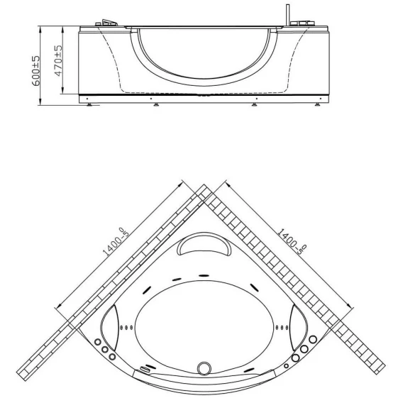 Душевой шланг, Душевая лейка, Подсветка, Металлический каркас, Панель под ванну, Подголовник, Смеситель, Слив-перелив, Ножки