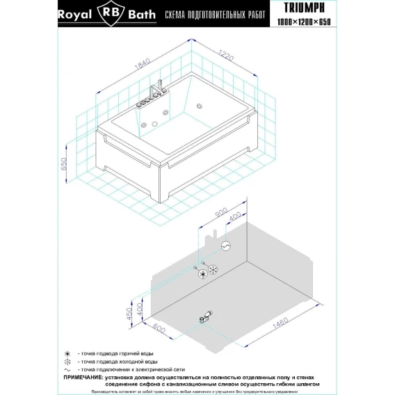 •  акриловая ванна Triumph 180х120х65 в сборе;