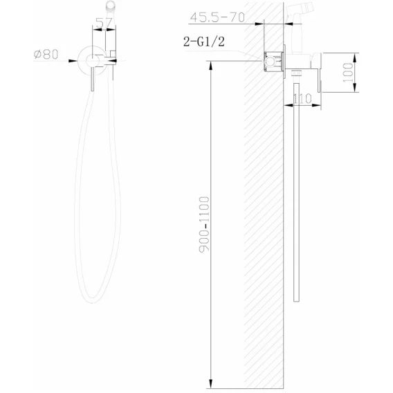 Душевой шланг, Душевая лейка, Подключение для душевого шланга с держателем, Скрытая монтажная часть, Смеситель