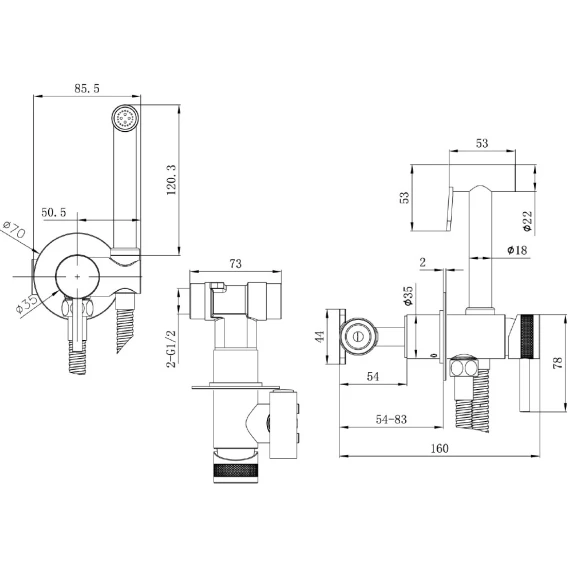 Гигиенический душ Splenka S01.52.06 со смесителем, черный матовый