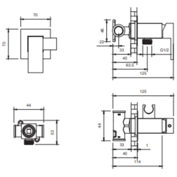 Душевой шланг, Душевая лейка, Подключение для душевого шланга с держателем, Скрытая монтажная часть, Смеситель