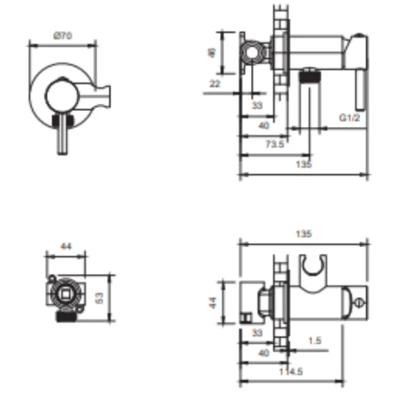 Душевой шланг, Душевая лейка, Подключение для душевого шланга с держателем, Скрытая монтажная часть, Смеситель