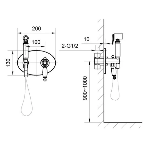 Гигиенический душ AltroBagno Opera AltroBagnoOpera060105Or со смесителем, золотой