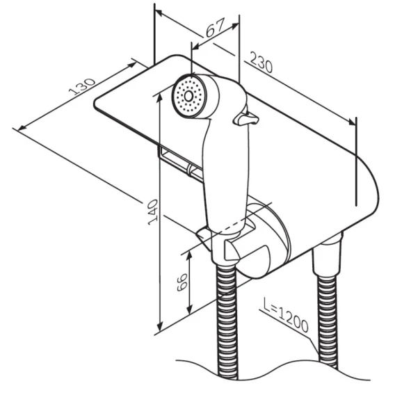Душевой шланг, Душевая лейка, Подключение для душевого шланга с держателем, Полочка, Крючок, Держатель туалетной бумаги, Скрытая монтажная часть, Смеситель
