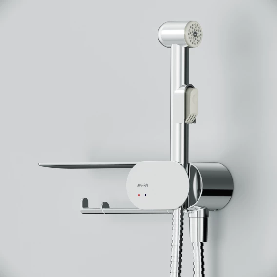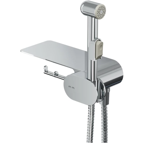 Душевой шланг, Душевая лейка, Подключение для душевого шланга с держателем, Полочка, Крючок, Держатель туалетной бумаги, Смеситель