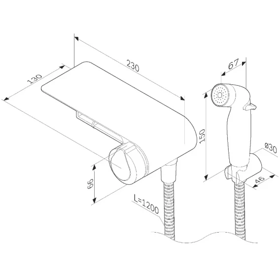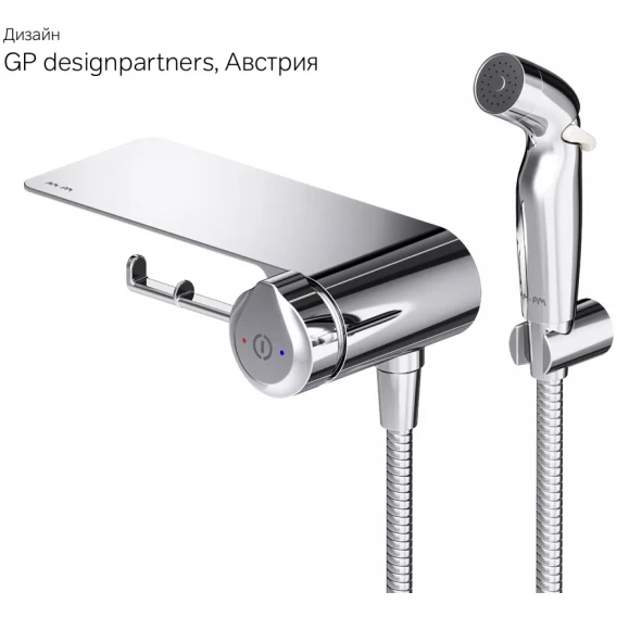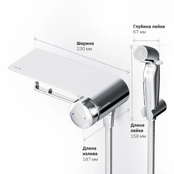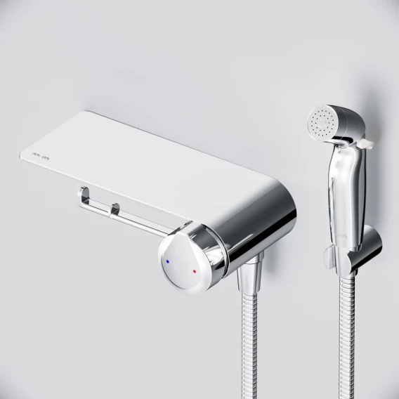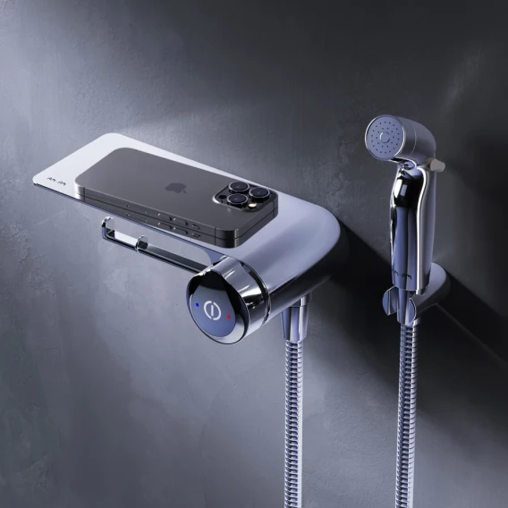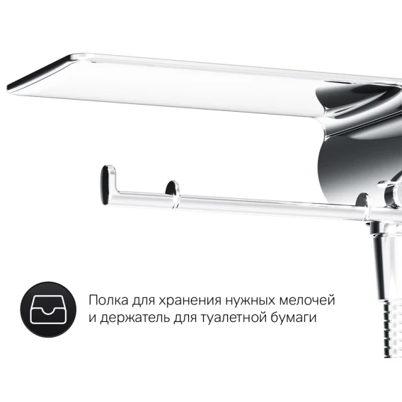 Душевой шланг, Душевая лейка, Держатель для душевой лейки, Подключение для душевого шланга, Полочка, Крючок, Держатель туалетной бумаги, Скрытая монтажная часть, Смеситель