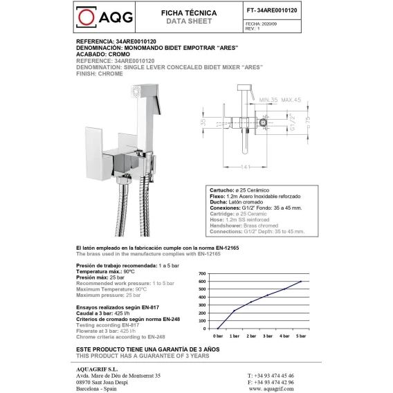 Гигиенический душ AQG Ares 34ARE0010120 со смесителем, хром