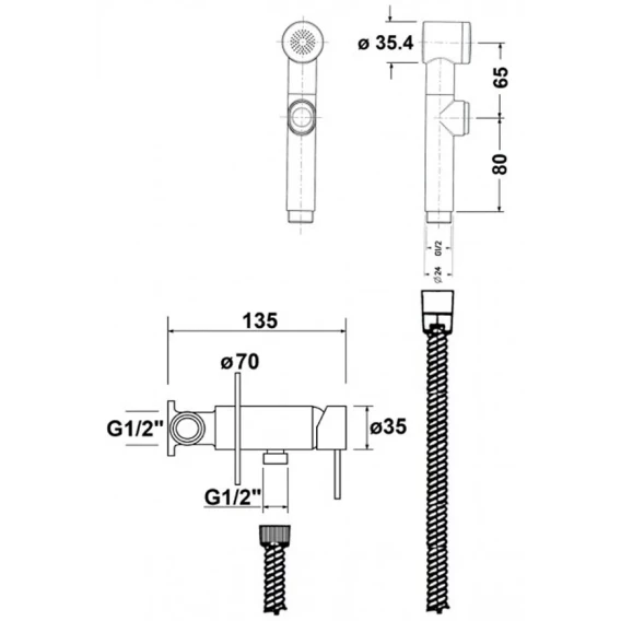 Гигиенический душ AQUAme Standart AQM6001CR со смесителем, хром