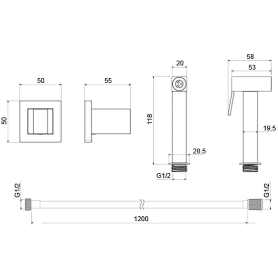 Гигиенический душ Aquatek AQ2053MB с держателем, шлангом, черный матовый