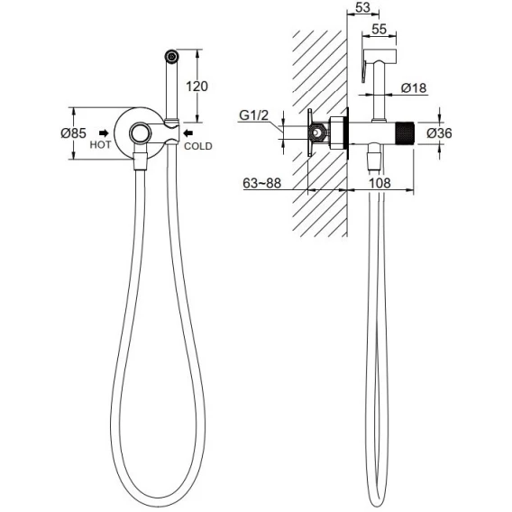 Душевой шланг, Душевая лейка, Подключение для душевого шланга с держателем, Скрытая монтажная часть, Смеситель
