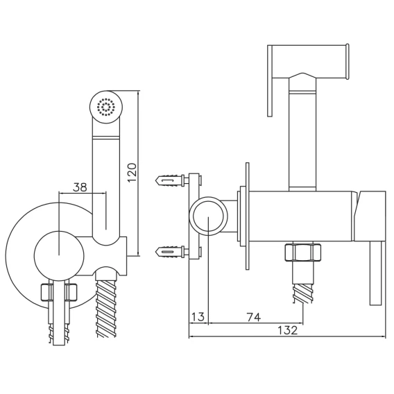 Душевой шланг, Душевая лейка, Подключение для душевого шланга с держателем, Скрытая монтажная часть, Смеситель