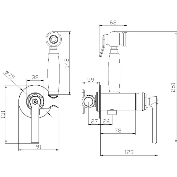 Душевой шланг, Душевая лейка, Подключение для душевого шланга с держателем, Скрытая монтажная часть, Смеситель