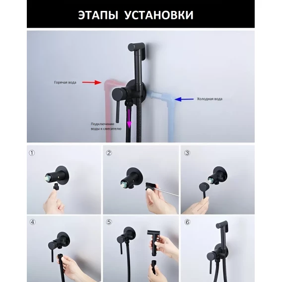 Душевой шланг, Душевая лейка, Подключение для душевого шланга с держателем, Скрытая монтажная часть, Смеситель