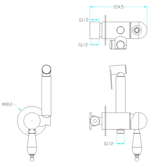 Душевой шланг, Душевая лейка, Подключение для душевого шланга с держателем, Скрытая монтажная часть, Смеситель