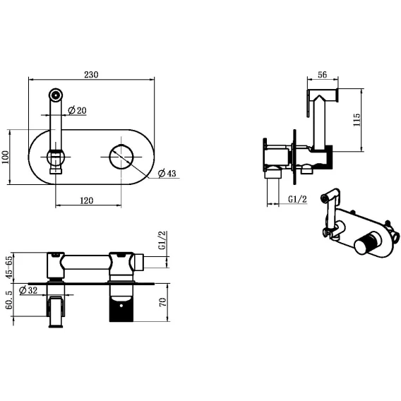 Душевой шланг, Душевая лейка, Подключение для душевого шланга с держателем, Скрытая монтажная часть, Смеситель