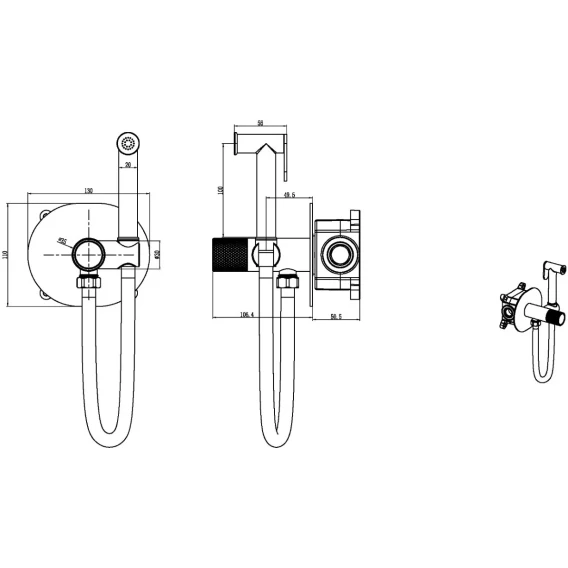 Душевой шланг, Душевая лейка, Подключение для душевого шланга с держателем, Скрытая монтажная часть, Смеситель