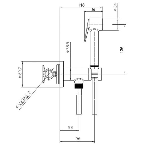 Душевой шланг, Душевая лейка, Подключение для душевого шланга с держателем, Скрытая монтажная часть, Смеситель