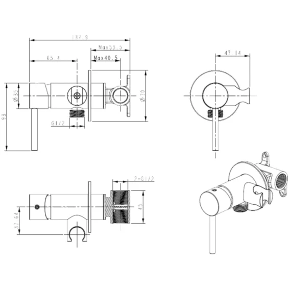 Душевой шланг, Душевая лейка, Подключение для душевого шланга с держателем, Скрытая монтажная часть, Смеситель