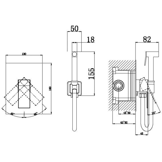 Душевой шланг, Душевая лейка, Подключение для душевого шланга с держателем, Скрытая монтажная часть, Смеситель