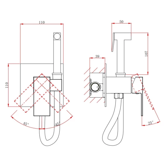 Душевой шланг, Душевая лейка, Подключение для душевого шланга с держателем, Скрытая монтажная часть, Смеситель