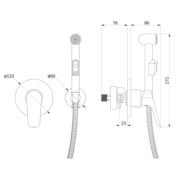 Душевой шланг, Душевая лейка, Подключение для душевого шланга с держателем, Скрытая монтажная часть, Смеситель