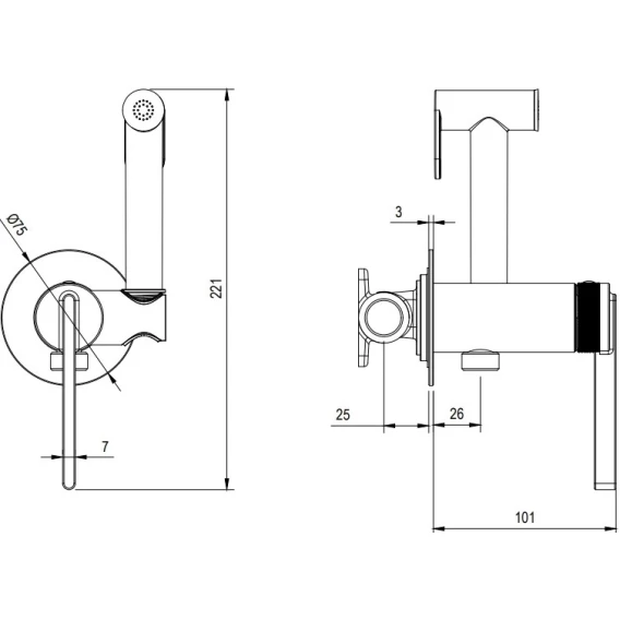 Душевой шланг, Душевая лейка, Подключение для душевого шланга с держателем, Скрытая монтажная часть, Смеситель
