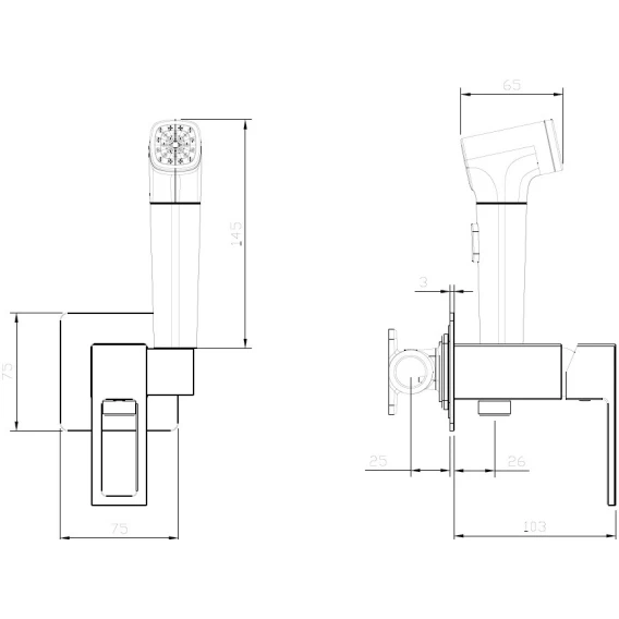 Душевой шланг, Душевая лейка, Подключение для душевого шланга с держателем, Скрытая монтажная часть, Смеситель