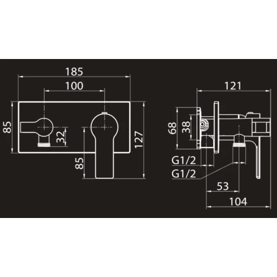 Душевой шланг, Душевая лейка, Подключение для душевого шланга с держателем, Скрытая монтажная часть, Смеситель