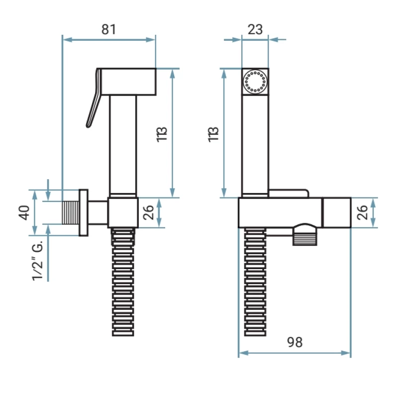 Душевой шланг, Душевая лейка, Подключение для душевого шланга с держателем, Угловой вентиль