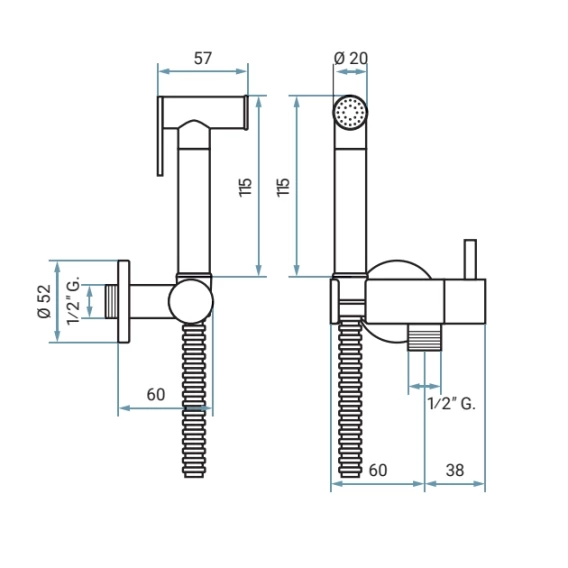 Гигиенический душ Emmevi 147/CR с держателем, шлангом, хром